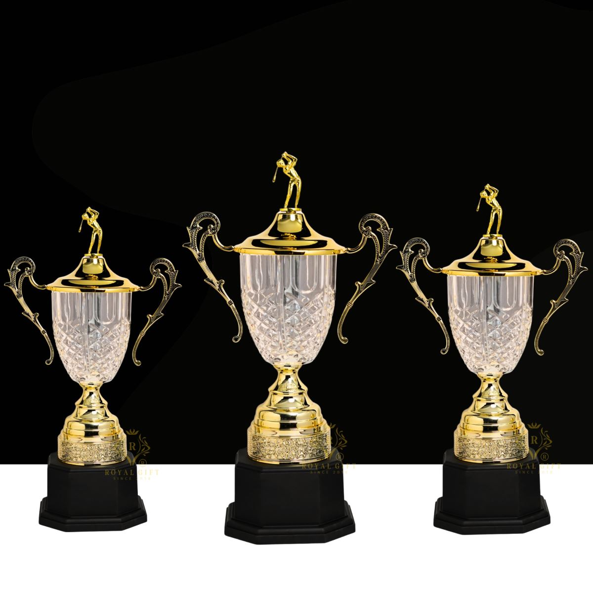 CÚP GOLF KIM LOẠI PHỐI MÀU VÀNG - TRẮNG THỦY TINH RG - G3062