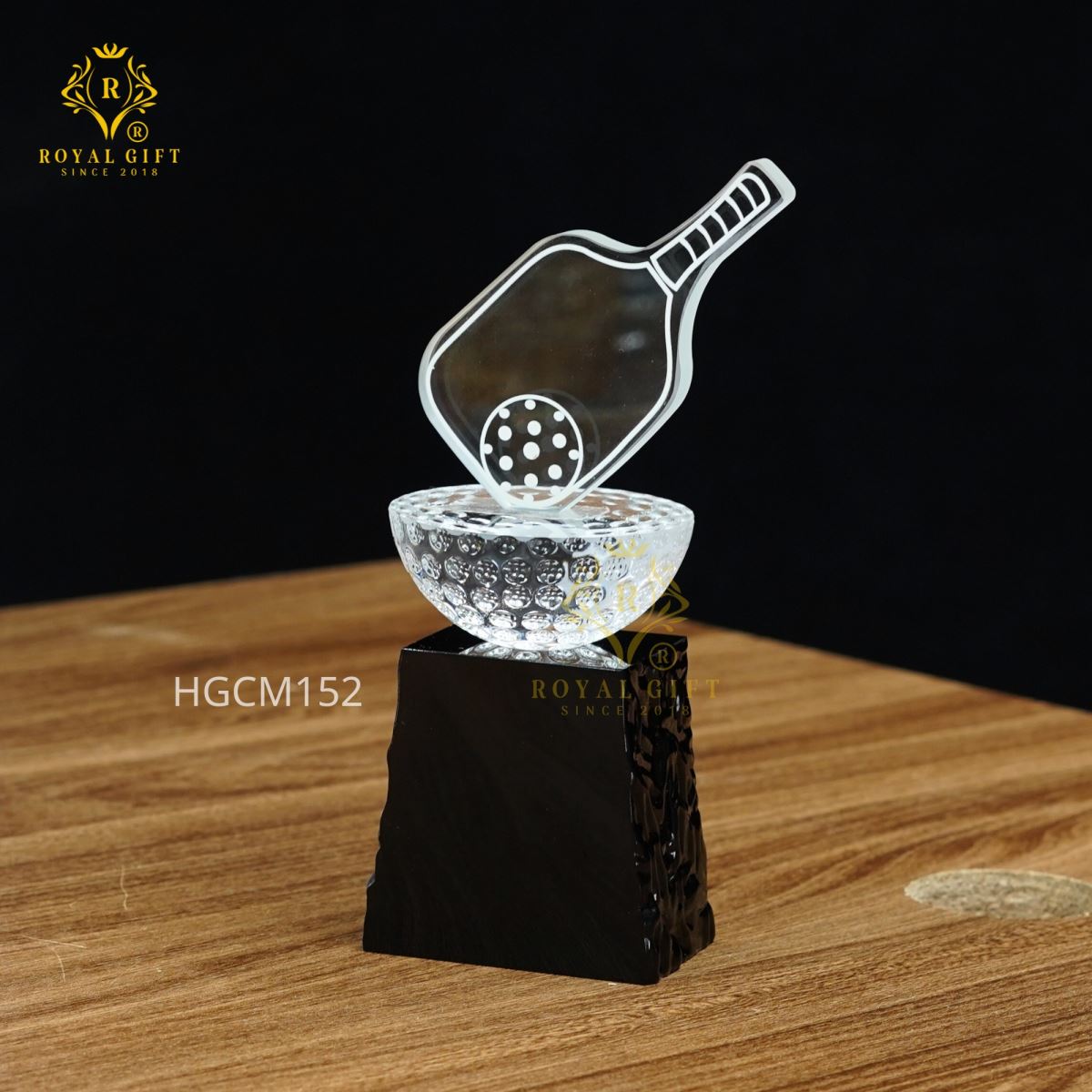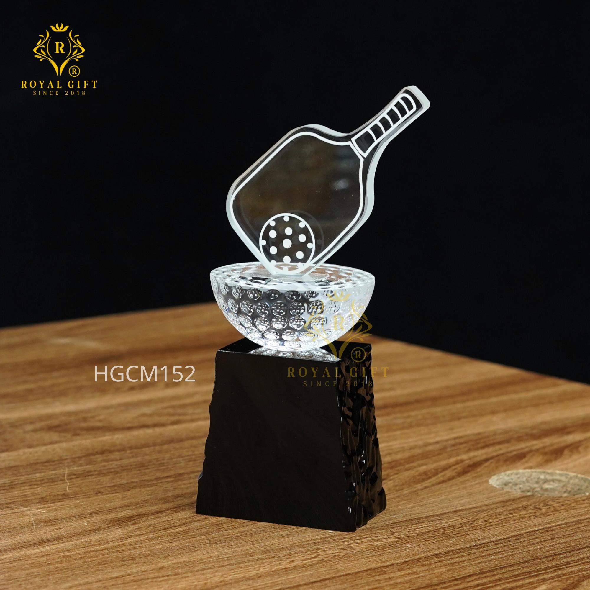 Mẫu cup này được thiết kế đặc biệt với đỉnh cup là hình ảnh của một chiếc vợt pickleball cùng bóng pha lê độc đáo. Điều này không chỉ mang lại cảm giác thể thao mà còn thể hiện sự sáng tạo và khác biệt, phù hợp cho những giải đấu thể thao chuyên nghiệp. Chi tiết này sẽ thu hút ánh nhìn và tạo ấn tượng mạnh mẽ cho người nhận.