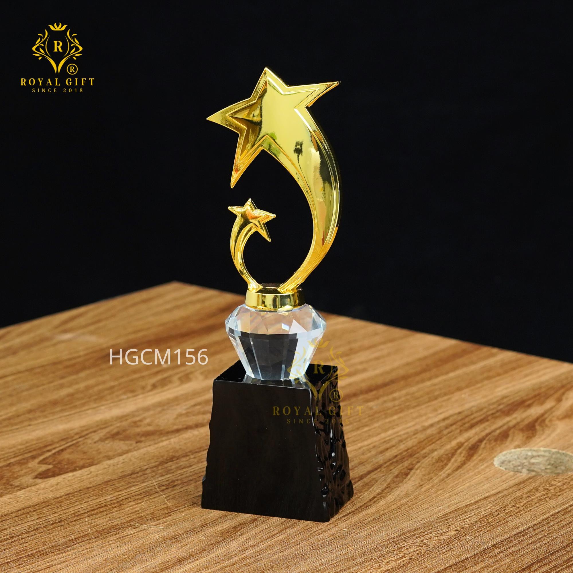 Cup pha lê K9 cao cấp - HGCM156 được thiết kế với đỉnh cup hình ngôi sao lấp lánh, mang lại cảm giác sang trọng và đẳng cấp. Chất liệu pha lê K9 cao cấp không chỉ giúp sản phẩm bền bỉ mà còn tỏa sáng dưới ánh đèn, tạo nên sự thu hút đặc biệt cho người nhận. Mỗi chiếc cup đều được chế tác tỉ mỉ, đảm bảo mang đến sự hoàn hảo cho từng chi tiết.