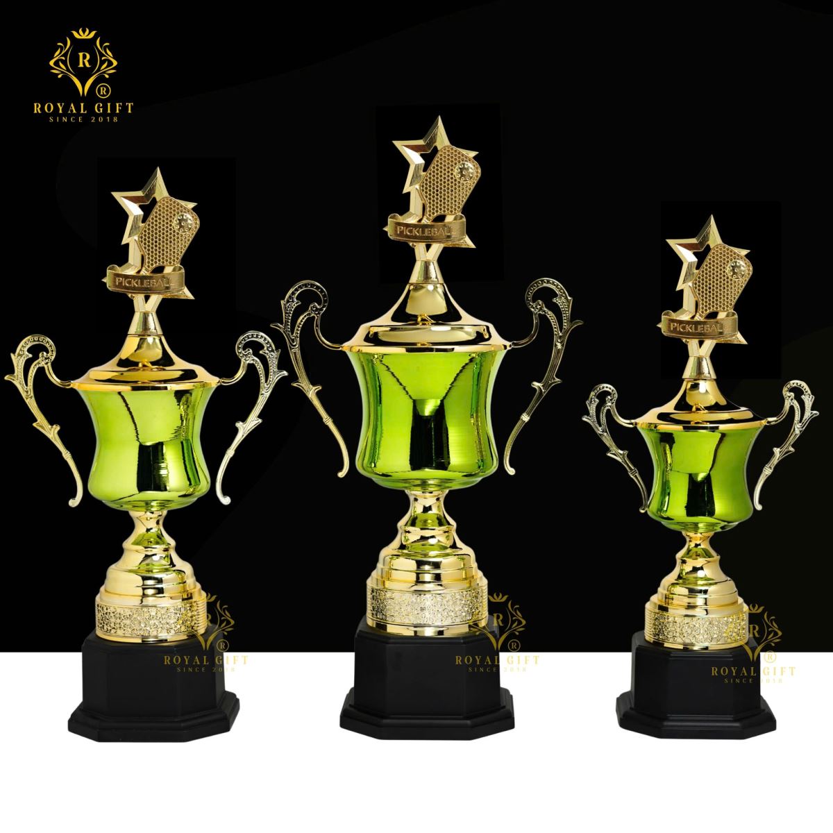 Chúng tôi không chỉ cung cấp một chiếc cúp đẹp, mà còn truyền tải một thông điệp về sự vinh danh xứng đáng. Sự sang trọng được thể hiện qua chất liệu kim loại và hoa văn hoàng gia. Sự tinh tế nằm ở thiết kế cân đối và khả năng tùy biến. Còn sự năng động toát lên từ chính tinh thần Pickleball và sự linh hoạt trong việc thay đỉnh cúp, thể hiện sự thấu hiểu và cập nhật xu hướng thể thao hiện đại của Royal Gift.