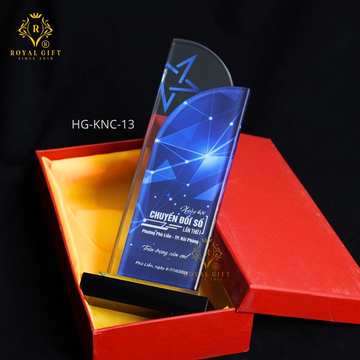 Kỷ niệm chương vinh danh pha lê HG - KNC - 13 là sự kết hợp hoàn hảo giữa nghệ thuật và chất lượng. Đây không chỉ là một món quà mà còn là biểu tượng của thành công và sự ghi nhận. Hãy để Royal Gift đồng hành cùng bạn trong việc tôn vinh những thành tích đáng nhớ. Với thiết kế độc đáo, chất lượng vượt trội và ý nghĩa sâu sắc, sản phẩm này sẽ là lựa chọn hoàn hảo cho mọi sự kiện và dịp lễ.