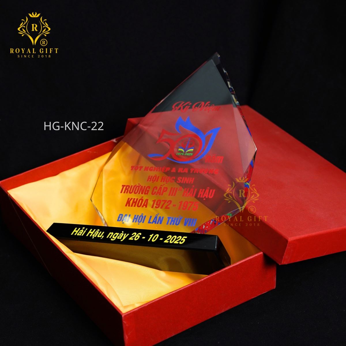 Kỷ niệm chương vinh danh pha lê cao cấp HG - KNC - 22 từ thương hiệu Royal Gift là biểu tượng hoàn hảo cho sự ghi nhận và tôn vinh những thành tựu xuất sắc. Với thiết kế tinh tế và chất liệu pha lê K9 cao cấp, sản phẩm không chỉ là một món quà, mà còn là một tác phẩm nghệ thuật thể hiện sự trân trọng và ghi nhận.
